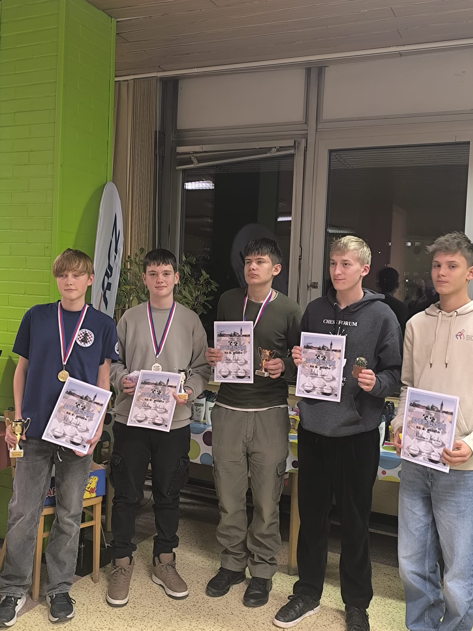 Poděkování patří paní H. Studničkové, která zajistila převzetí cen. Bohužel náš tým musel spěchat na vlak. Na závěr děkujeme všem našim juniorům za reprezentaci Teplice Chess Club. Příště Vás budeme informovat o juniorské akci čtyřčlenných družstev 29. 11. 2025 v Chlumci u Ústí nad Labem.